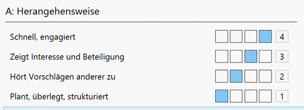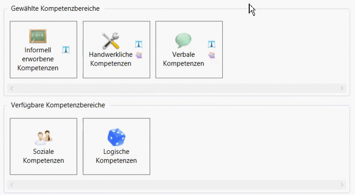 Verschieben Sie Kompetenzbereiche ganz einfach mit Ihrer Maus. Halten Sie die Maustaste auf einem Kompetenzbereich gedrückt, um ihn zu verschieben. Die Reihenfolge kann jedezeit geändert werden, auch wenn bereits Kompetenzen erfasst wurden.