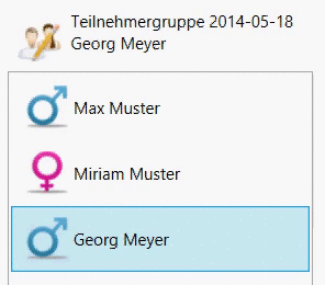 Klicken Sie auf das Icon über der Teilnehmergruppe, um alle Namen und Geschlechter nacheinander zu bearbeiten. Damit können Sie ohne viel Aufwand eine große Anzahl an Teilnehmern anlegen.